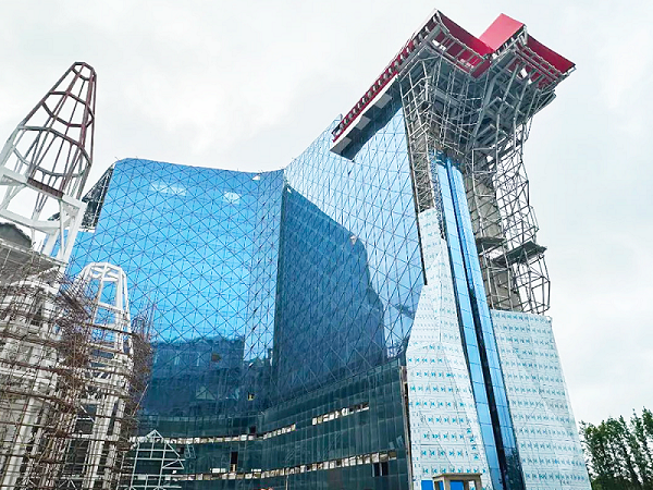 雅泰集團承建上海臨港冰雪北區(qū)幕墻整體制作及建設(shè),本項目為菠蘿面異形設(shè)計,充滿現(xiàn)代感的外立面,把冰雪世界的晶瑩閃耀充分展現(xiàn)。與之相匹配的鋁幕墻板的結(jié)構(gòu)復雜,加工難度較大,全異型、超大、超寬、超長鋁板,多數(shù)板長6-7米,且角度尖銳精度要求非常嚴格。面對高難度重點工程,雅泰集團快速成立項目攻艱突擊隊,選調(diào)管理、設(shè)計、加工精英,結(jié)合理解冰雪項目設(shè)計特點,最大程度達成設(shè)計師初衷。加工團隊對異型板件進行優(yōu)化拆解,分件加工,再進行一體化工廠組裝集成。同時集團擁有行業(yè)內(nèi)體量、規(guī)模均在前列,全長700米的進口先進噴涂設(shè)備,充分滿足超大、超長、超寬鋁板的氟碳漆面噴涂完成。